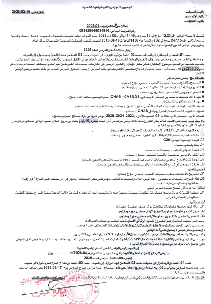 إعلان عن استشارة 2026/04 بلدية المطارفة