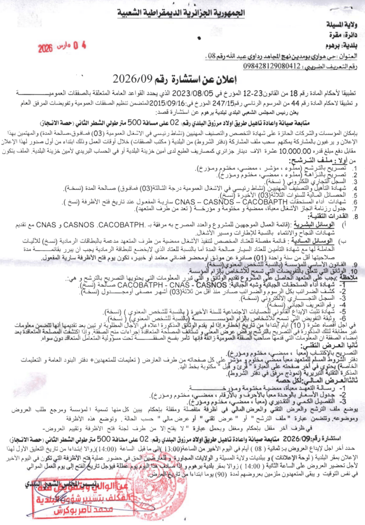 إعلان عن استشارة 2026/09 بلدية برهوم