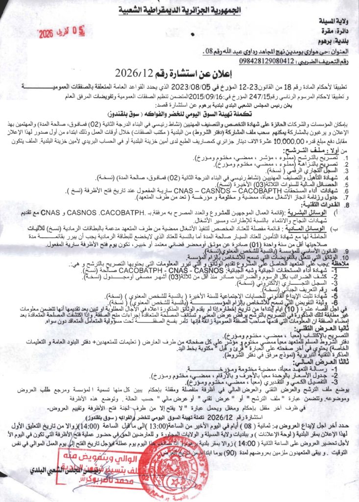 إعلان عن استشارة 2026/12 بلدية برهوم