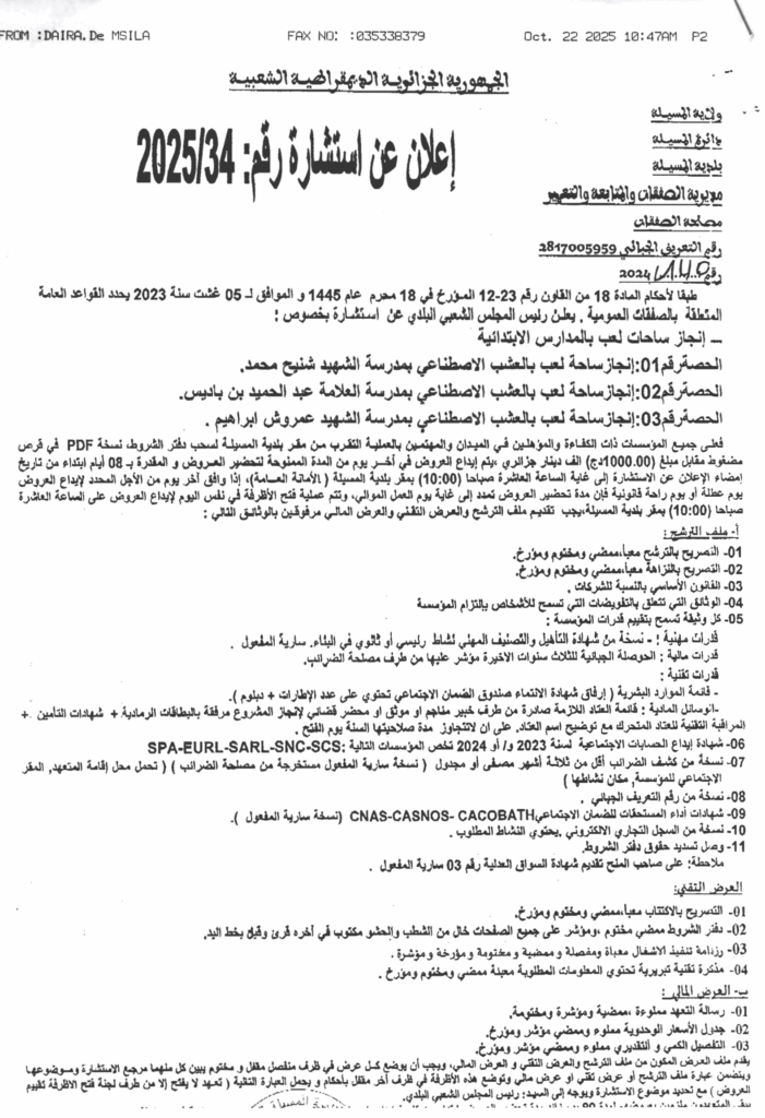 إعلان عن اسشتارة 2025/34 بلدية برهوم