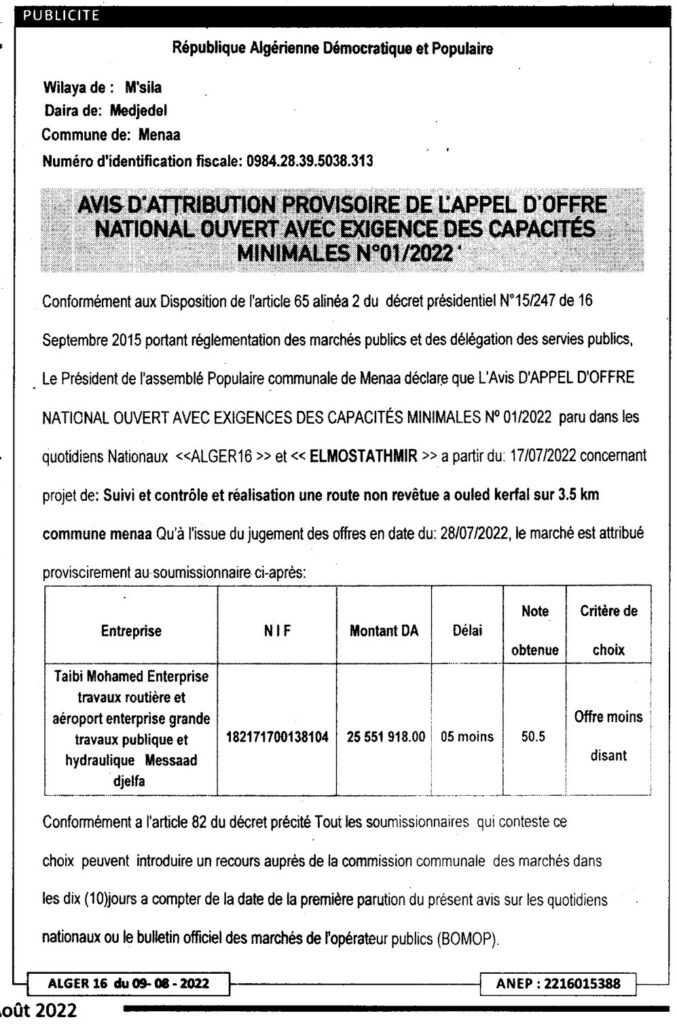 منح مؤقت: المراقبة والتحكم وإنشاء طريق غير ممهد في أولاد كيرفال بطول 3.5 كم10 أغسطس، 20220 27 شاركها فيسبوك X مشاركة عبر البريد طباعة