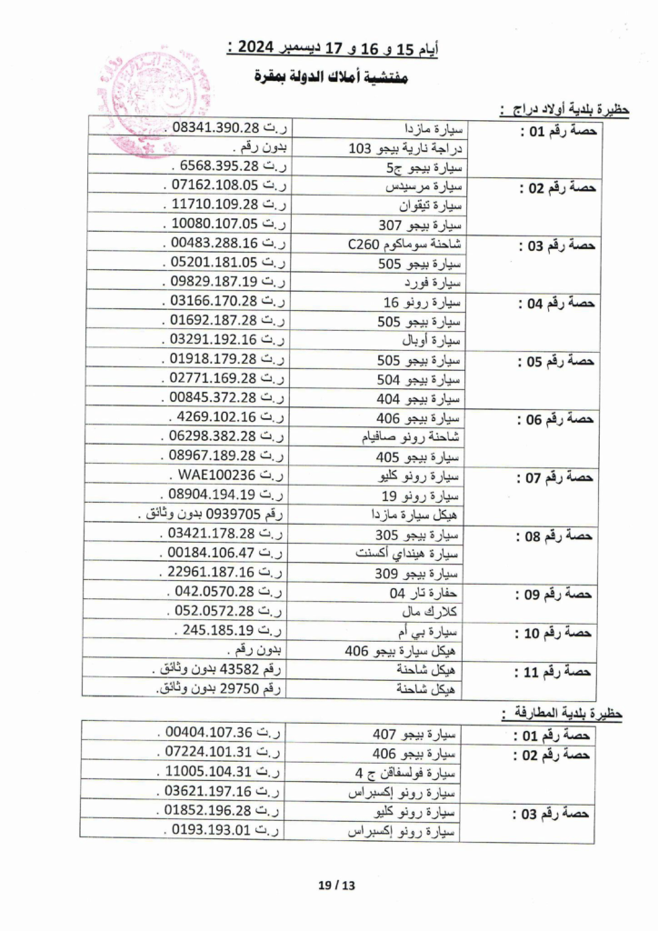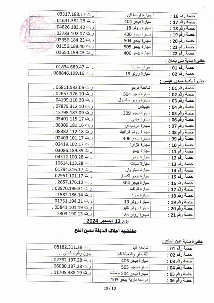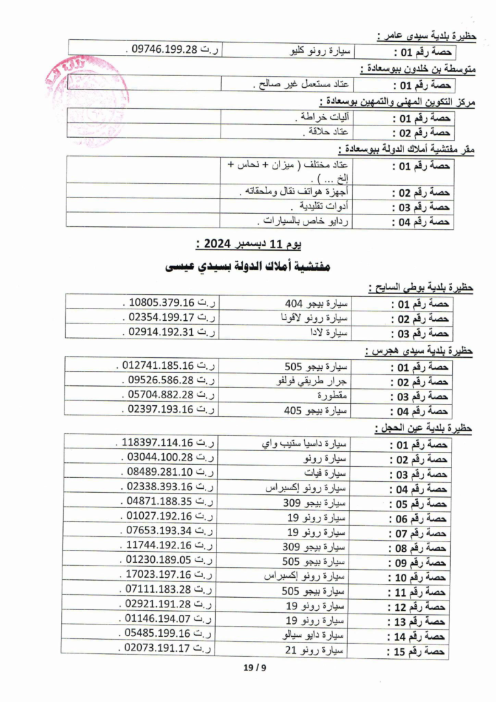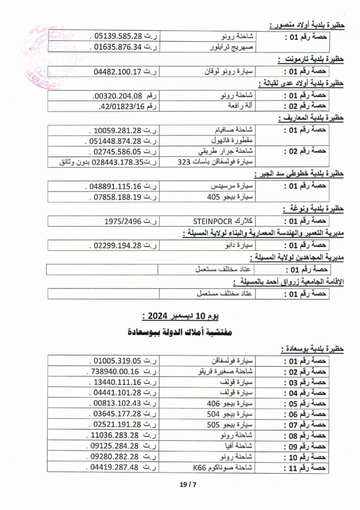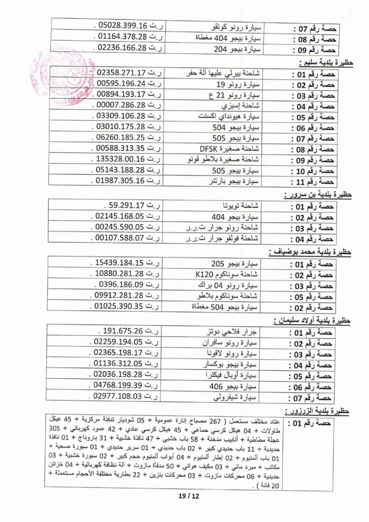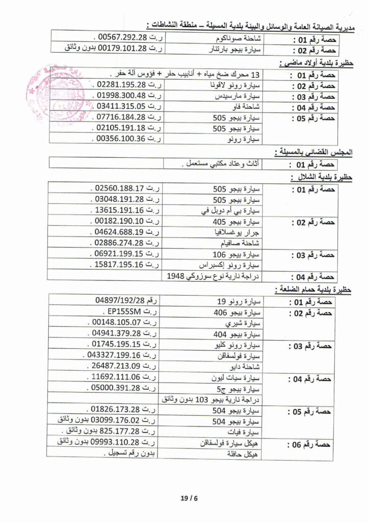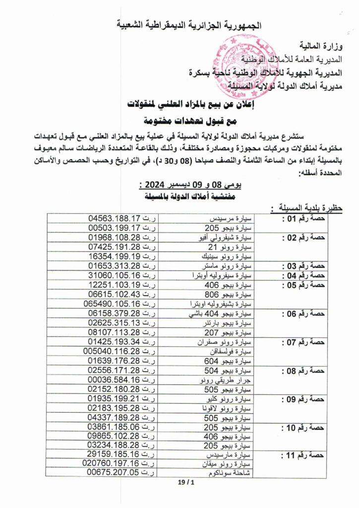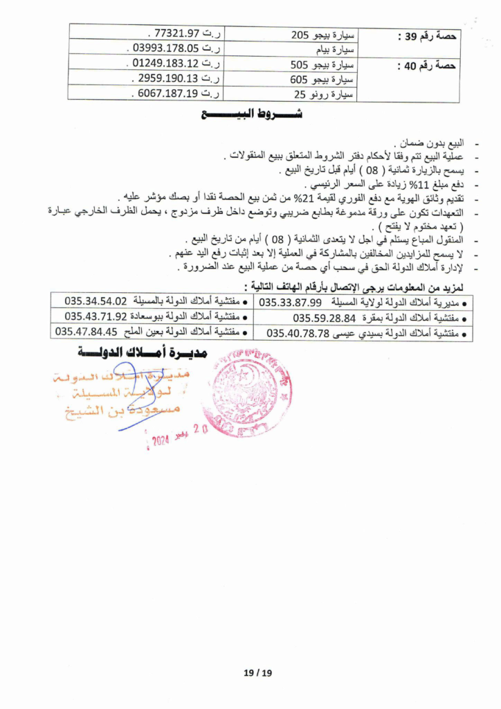 إعلان عن بيع بالمزاد العلني لمنقولات مع قبول تعهدات مختومة/ مديرية أملاك الدولة لولاية المسيلة