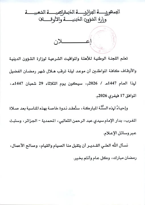 إعلان عن ترقب هلال شهر رمضان