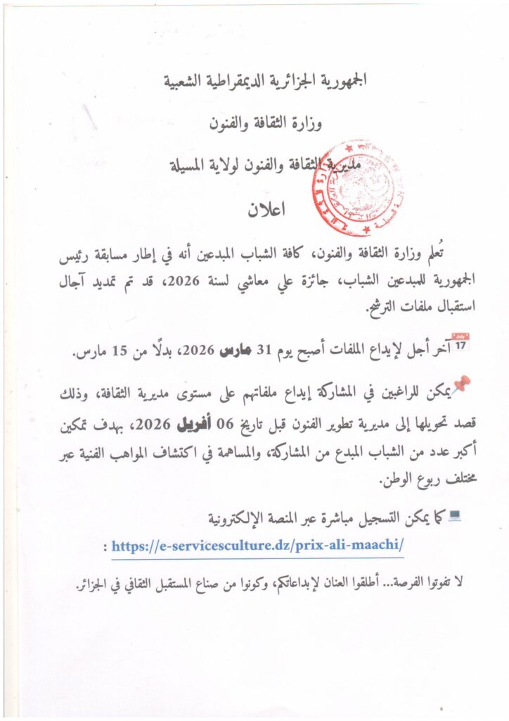 إعلان عن جائزة رئيس الجمهورية للمبدعين الشباب