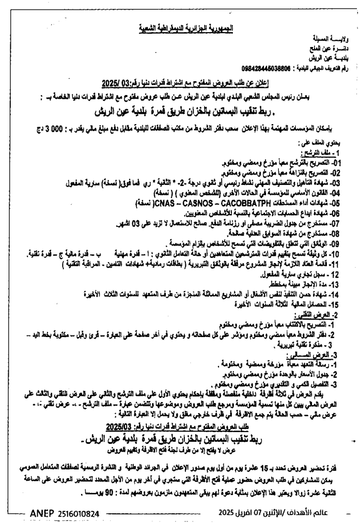 ربط تنقيب البساتين بالخزان طريق قمرة بلدية عين الريش7 أبريل، 20250 8 شاركها فيسبوك X مشاركة عبر البريد طباعة