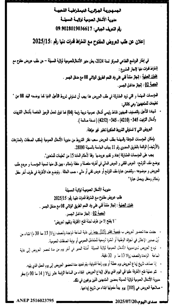 انجاز منشأ فني عى واد اللحم الطريق الولائي 08 مع مدخل الجسر20 يوليو، 20250 15 شاركها فيسبوك X مشاركة عبر البريد طباعة