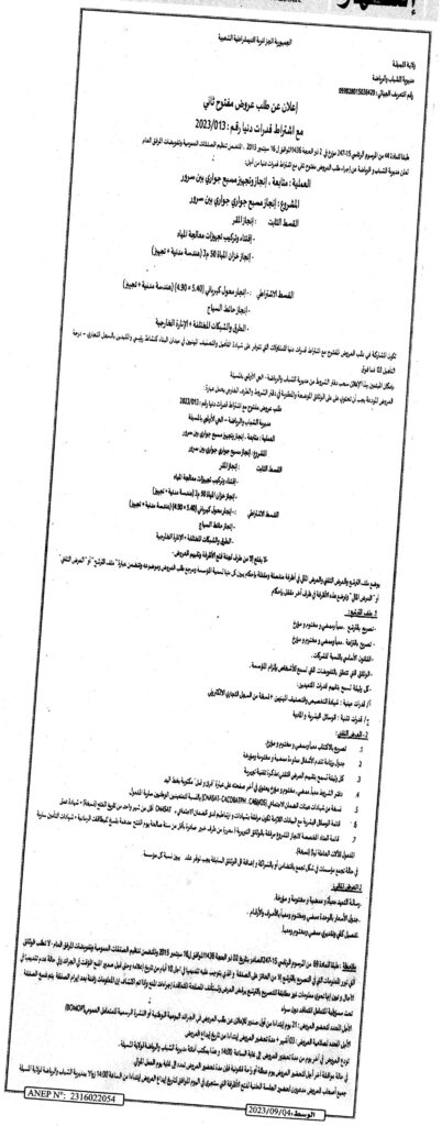 إعلان عن طلب عروض مفتوح ثاني 2023/13 مديرية الشباب والرياضة لولاية المسيلة