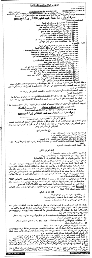 طلب عروض مفتوح مع اشتراط قدرات دنيا من أجل دراسة ومتابعة وتهيئة للطور الابتدائي (برنامج 2023)28 أغسطس، 20230 62 شاركها فيسبوك X مشاركة عبر البريد طباعة