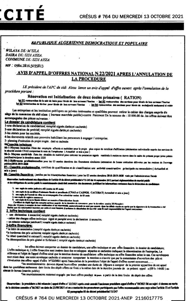 إعلان عن طلب عروض مفتوح الخاصة بــ تجديد وتهيئة مدرستين ابتدائيتين (تموين)13 أكتوبر، 20210 0 شاركها فيسبوك X مشاركة عبر البريد طباعة