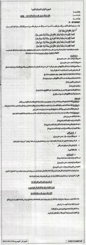 إعلان عن طلب عروض مفتوح 2023/02 بلدية مقرة