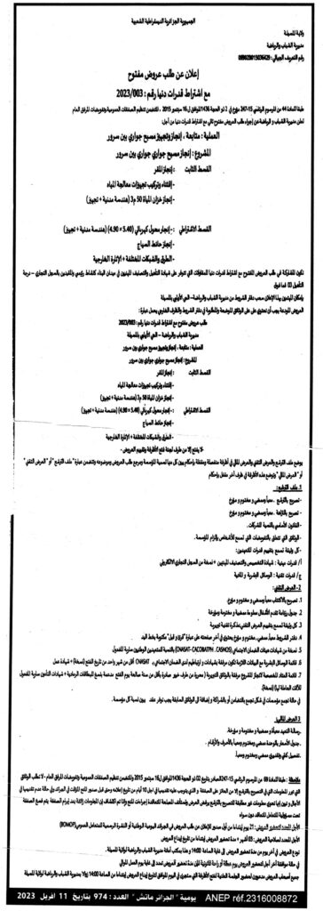 إعلان عن طلب عروض مفتوح 2023/03 مديرية الشباب والرياضة لولاية المسيلة