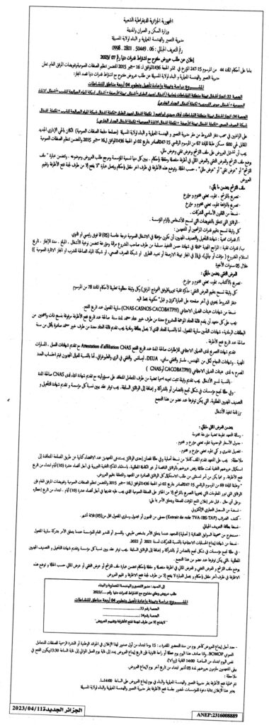 إعلان عن طلب عروض مفتوح 2023/07 مديرية التعمير والهندسة المعمارية والبناء لولاية المسيلة