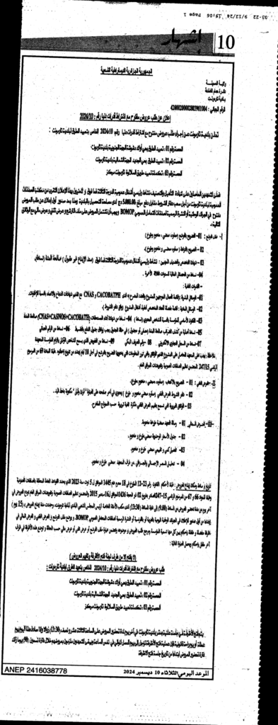 إعلان عن طلب عروض مفتوح 2024/10 بلدية تارمونت