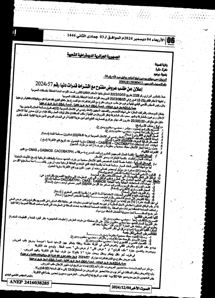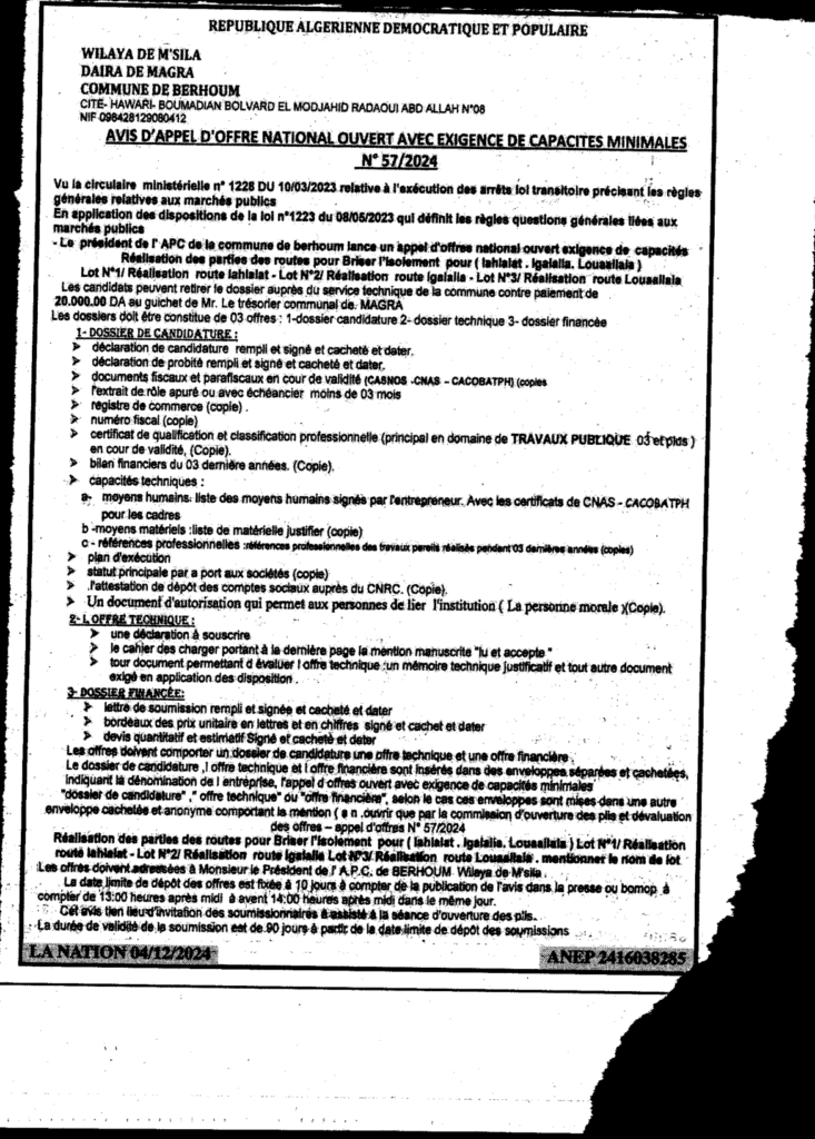 إعلان عن طلب عروض مفتوح 2024/57 بلدية برهوم