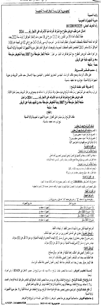 إعلان عن طلب عروض مفتوح 2025/02 بلدية عين الريش
