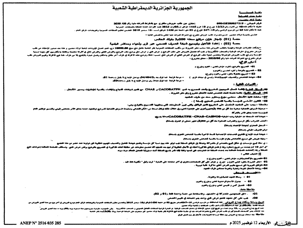 إعلان عن طلب عروض مفتوح 2025/05 بلدية أولاد منصور