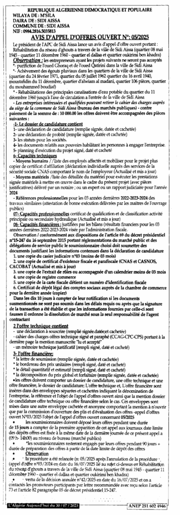 إعادة تأهيل شبكة الصرف الصحي عبر أحياء بلدية سيدي عيسى30 يوليو، 20250 10 شاركها فيسبوك X مشاركة عبر البريد طباعة