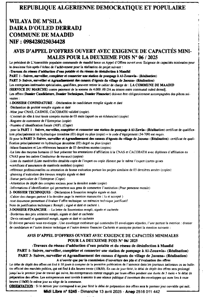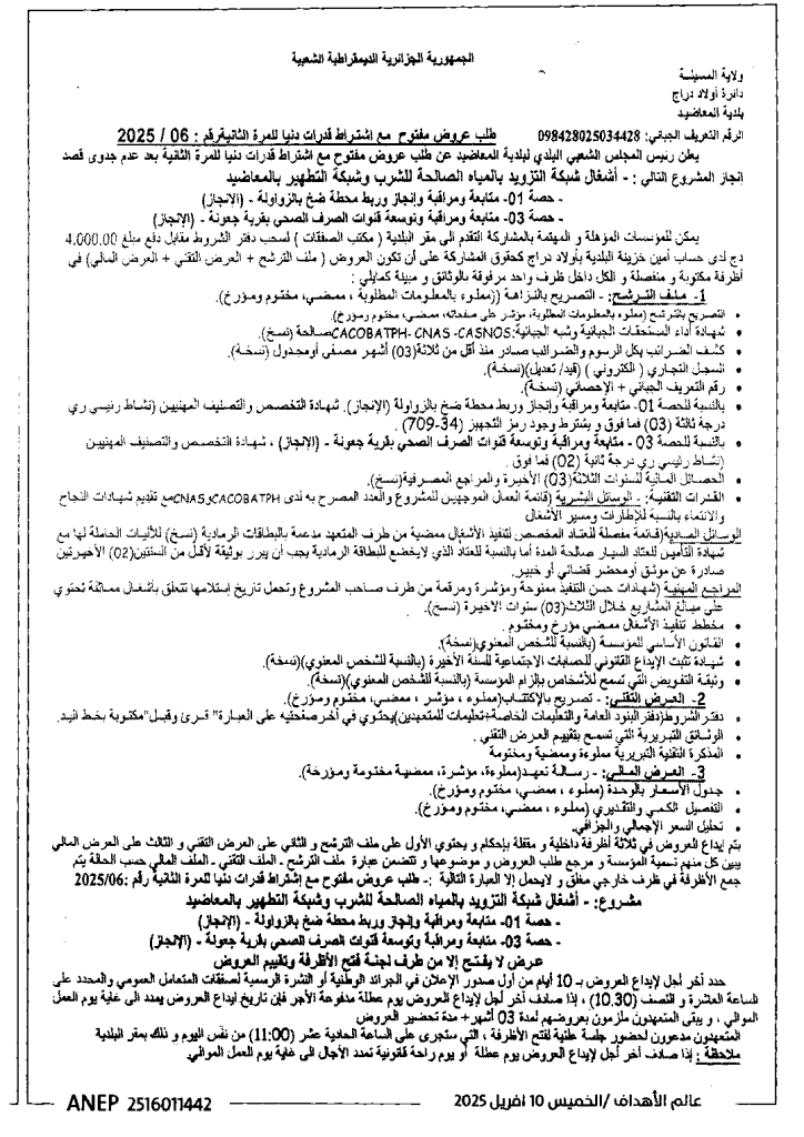 أشغال شبكة التزويد بالمياه الصالحة للشرب وشبكة التطهير بالمعاضيد10 أبريل، 20250 1 شاركها فيسبوك X مشاركة عبر البريد طباعة