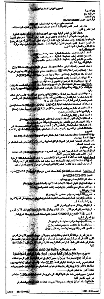 إعلان عن طلب عروض مفتوح 2025/11 بلدية المعاضيد