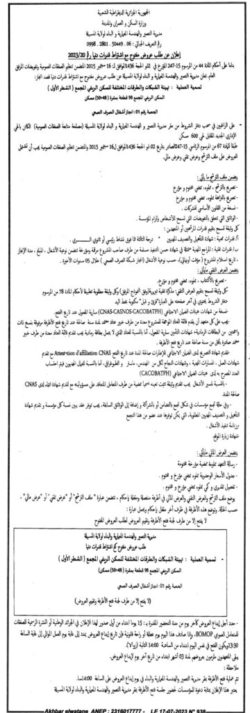 إعلان عن طلب عروض مفتوح 2023/20 مديرية التعمير والهندسة المعمارية والبناء لولاية المسيلة