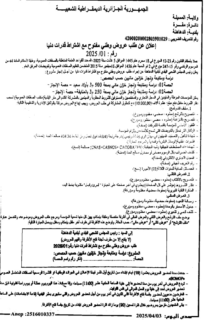 دراسة ومتابعة انجاز خزانين مائيين حسب الحصص3 أبريل، 20250 25 شاركها فيسبوك X مشاركة عبر البريد طباعة