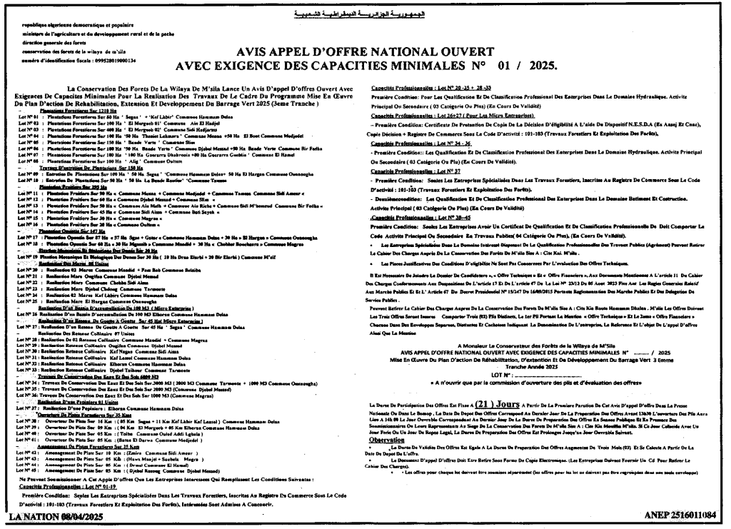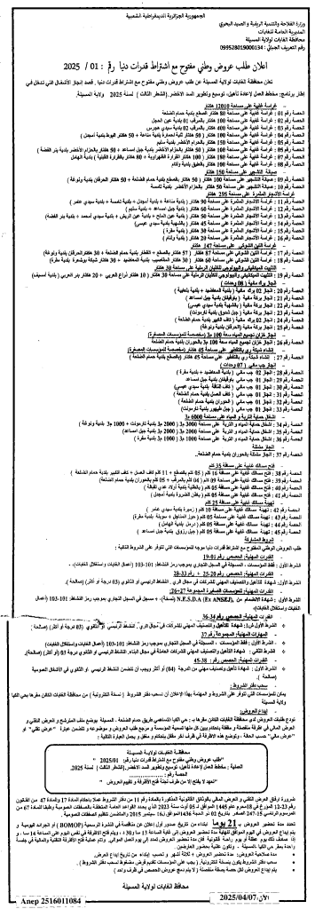 مخطط العمل لإعادة تأهيل توسيع وتطوير السد الأخضر (الشطر الثالث) لسنة 20259 أبريل، 20250 84 شاركها فيسبوك X مشاركة عبر البريد طباعة