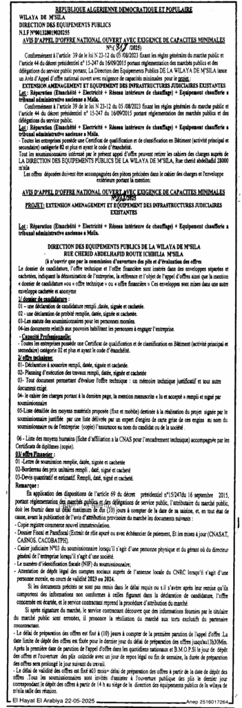 توسعة تهيئة وتجهيز المنشآت القضائية المتواجدة21 مايو، 20250 24 شاركها فيسبوك X مشاركة عبر البريد طباعة