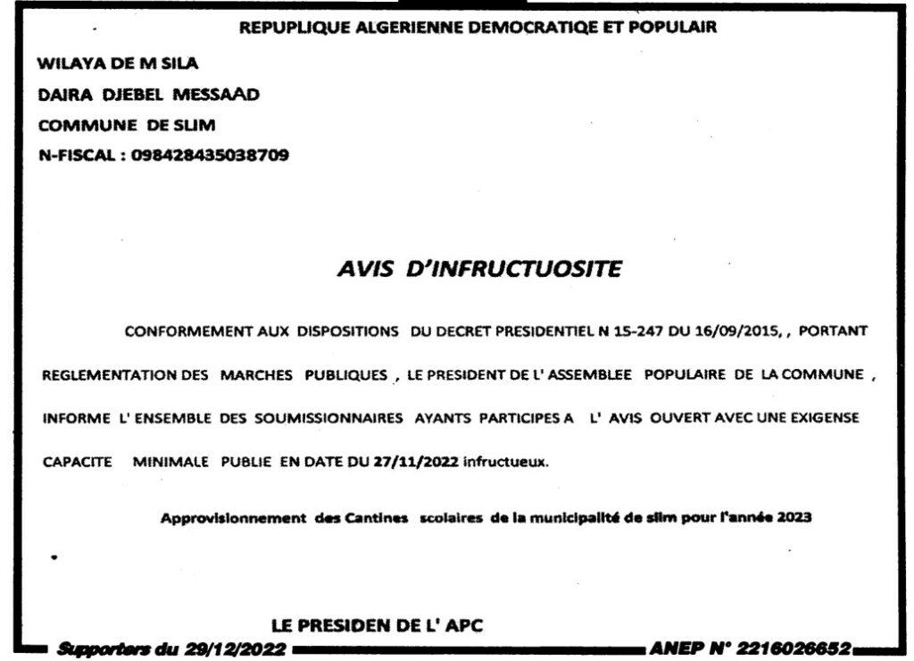 إعلان عن عدم جدوى/ سليم