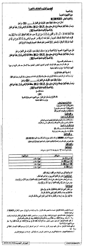 إعلان عن مسابقة وطنية محدودة من أجل دراسة ومتابعة لانجاز متوسطة نوع 6 على مستوى موقع 200LS+LPL530 بمخطط شغل الأراضي رقم 13 بلدية عين الملح/ مديرية التجهيزات العمومية لولاية المسيلة