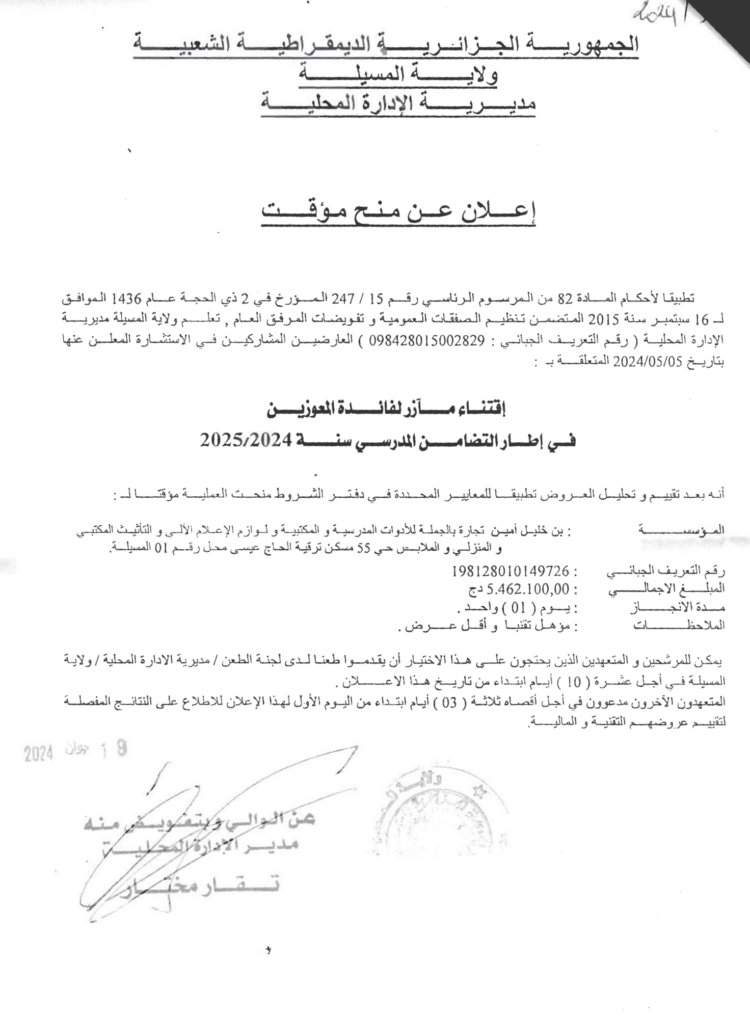 استشارة من أجل: اقتناء مآزر لفائدة المعوزين في إطار التضامن المدرسي سنة 2025/202420 يونيو، 20240 20 شاركها فيسبوك X مشاركة عبر البريد طباعة