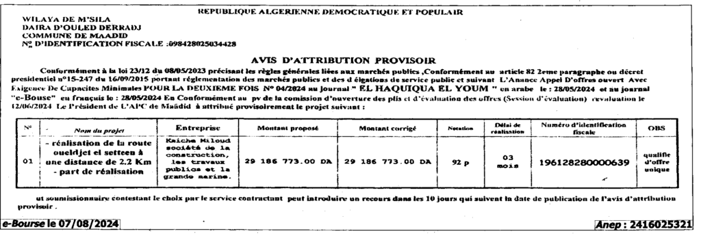 إعلان عن منح مؤقت/ بلدية المعاضيد