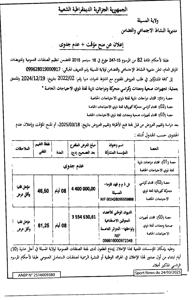 تجهيزات صحية ومعدات وكراسي متحركة ودراجات نارية لفئة ذوي الاحتياجات الخاصة24 مارس، 20250 24 شاركها فيسبوك X مشاركة عبر البريد طباعة