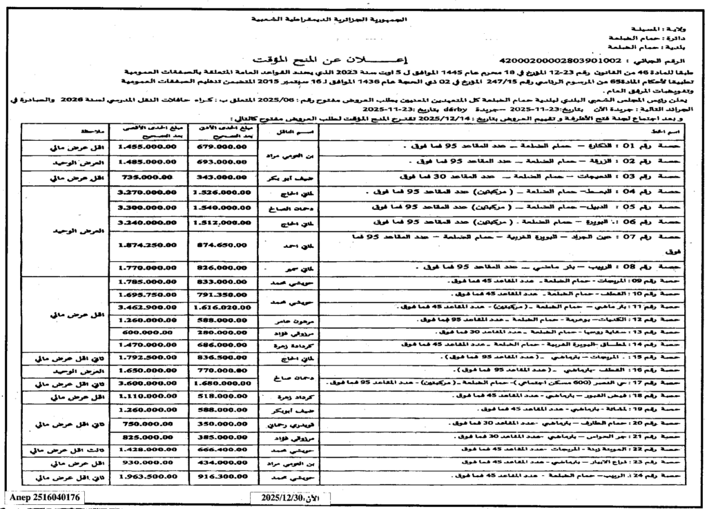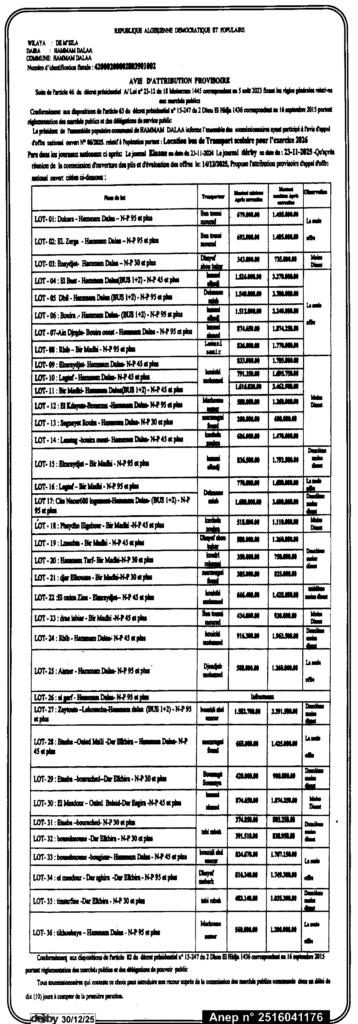 إشعارات بالمنحالصفقات العمومية