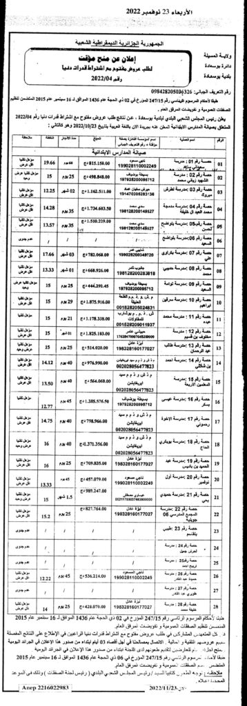 طلب عروض مفتوح مع اشتراط قدرات دنيا المتعلق بــ : صيانة المدارس الابتدائية23 نوفمبر، 20220 50 شاركها فيسبوك X مشاركة عبر البريد طباعة