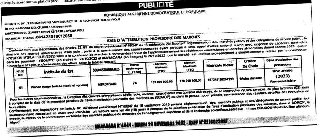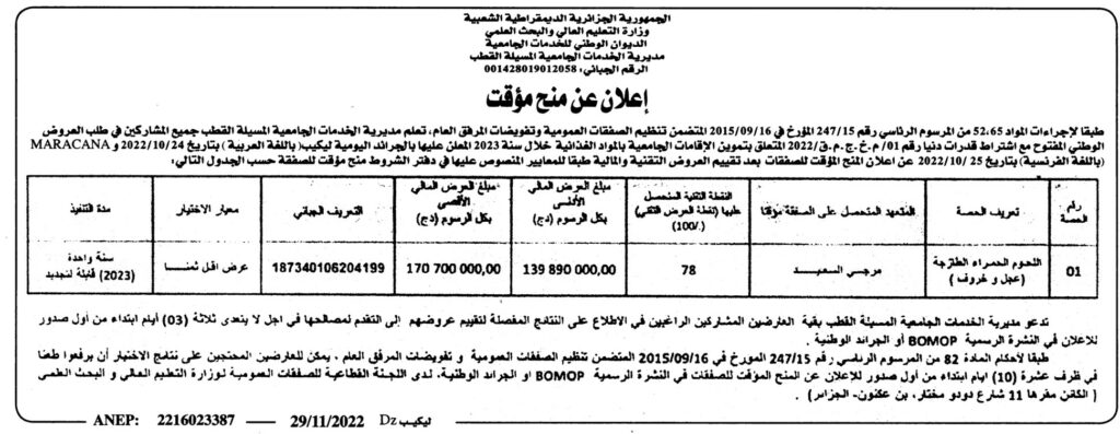 طلب العروض الوطني المفتوح مع اشتراط قدرات دنيا المتعلق بتموين الإقامات الجامعية بالمواد الغذائية خلال سنة 202329 نوفمبر، 20220 34 شاركها فيسبوك X مشاركة عبر البريد طباعة