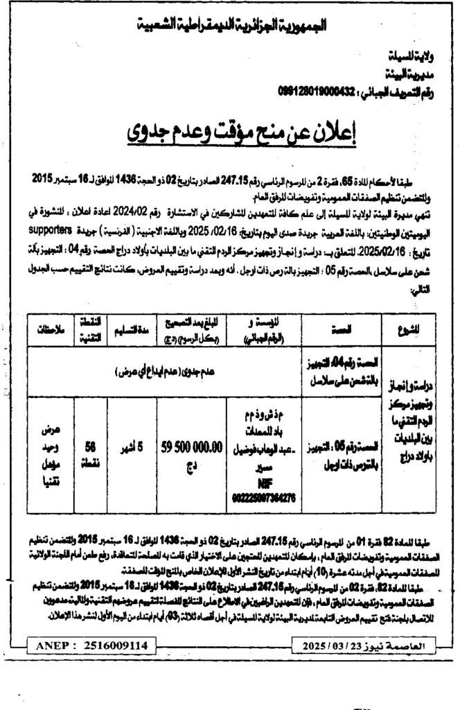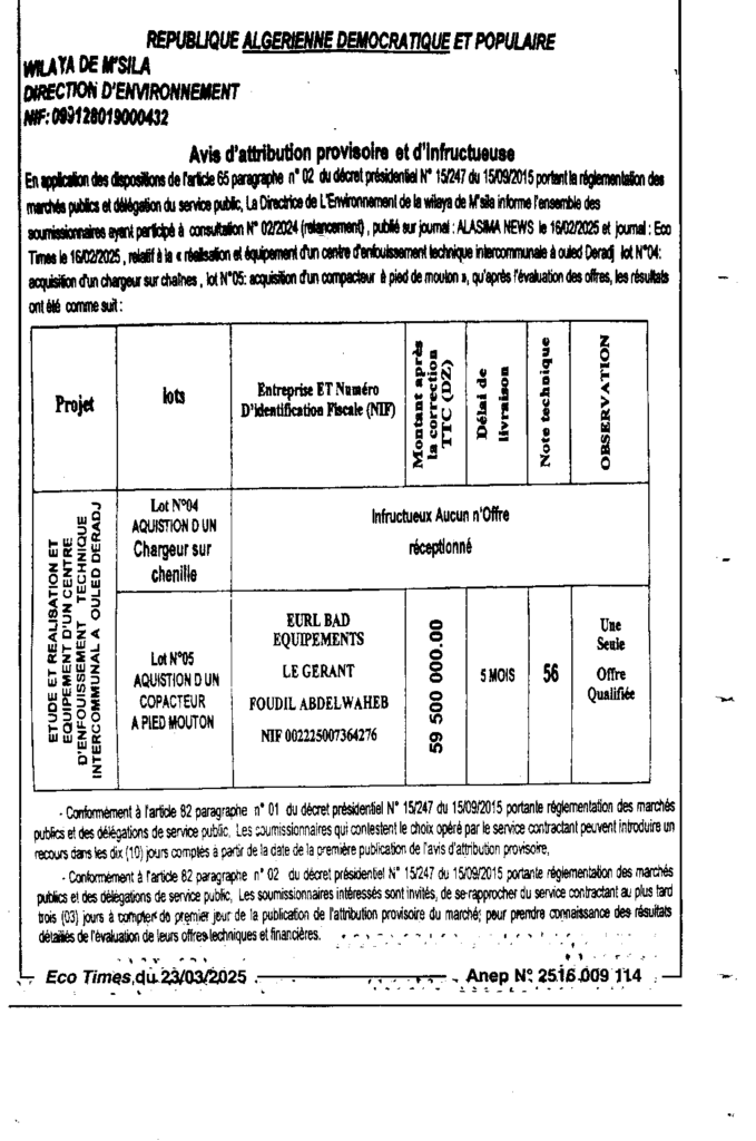 دراسة وانجاز وتجهيز مركز الردم التقني ما بين البلديات بأولاد دراج23 مارس، 20250 10 شاركها فيسبوك X مشاركة عبر البريد طباعة