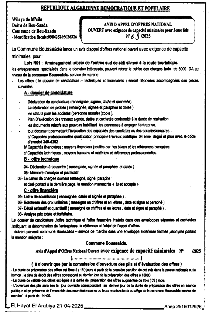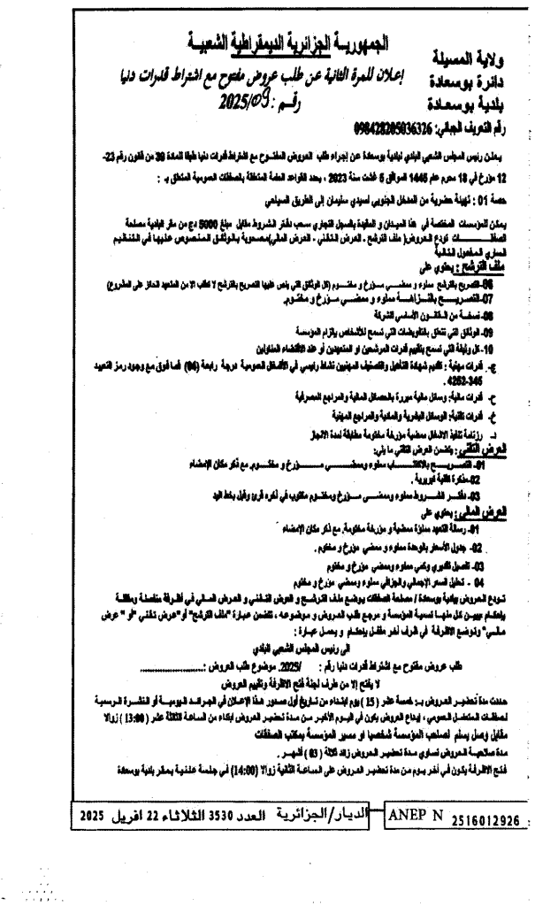 حصة 01: تهيئة حضرية من المدخل الجنوبي لسيدي سليمان إلى الطريق السياحي21 أبريل، 20250 16 شاركها فيسبوك X مشاركة عبر البريد طباعة