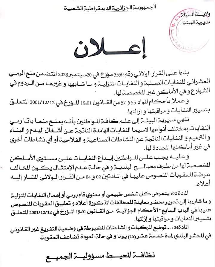 إعلان/ مديرية البيئة