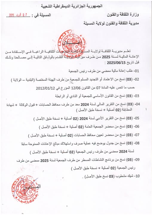 إعلان/ مديرية الثقافة لولاية المسيلة