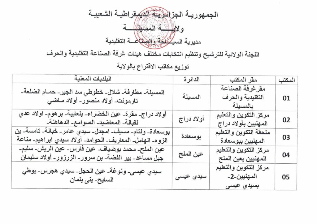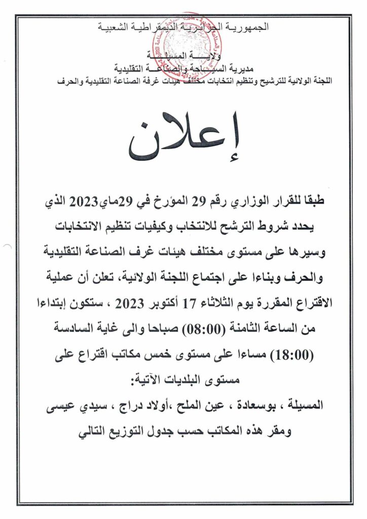 إعلان/ مديرية السياحة والصناعة التقليدية