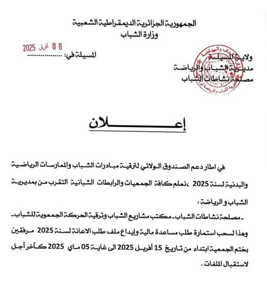 إعلان/ مديرية الشباب والرياضة