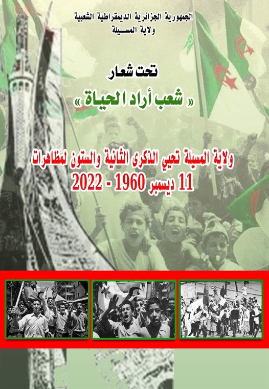 المسيلة/ ولاية المسيلة تحيي الذكرى 62 لمظاهرات 11 ديسمبر 1960-2022 تحت شعار “شعب أراد الحياة”8 ديسمبر، 20220 12 شاركها فيسبوك X مشاركة عبر البريد طباعة