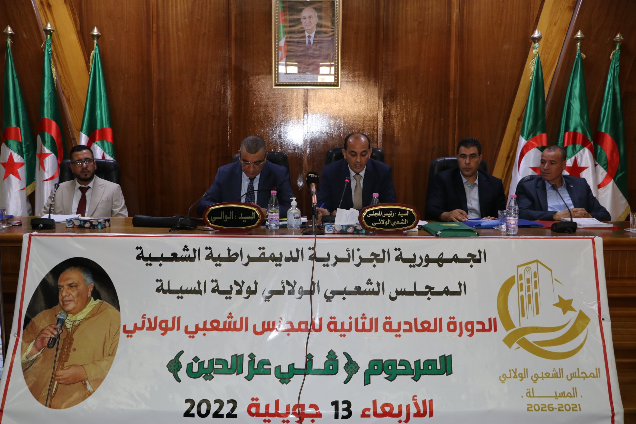 بحضور السيد عبد القادر جلاوي والي الولاية وبرئاسة السيد رئيس المجلس الشعبي الولائي، انطلاق اجتماع الدورة العادية الثانية للمجلس الشعبي لولاية المسيلة، بحضور السادة: أعضاء المجلس الشعبي الولائي، نواب المجلس الشعبي الوطني، الأمين العام للولاية، مندوب وسيط الجمهورية، عضو المجلس الأعلى للشباب، مدير التقنين والشؤون العامة، مدير الادارة المحلية، رؤساء الدوائر، رؤساء المجالس الشعبية البلدية، المدراء التنفيذيين، أعضاء الاسرة الاعلامية وبحضور ممثلي المجتمع المدني والمواطنين.