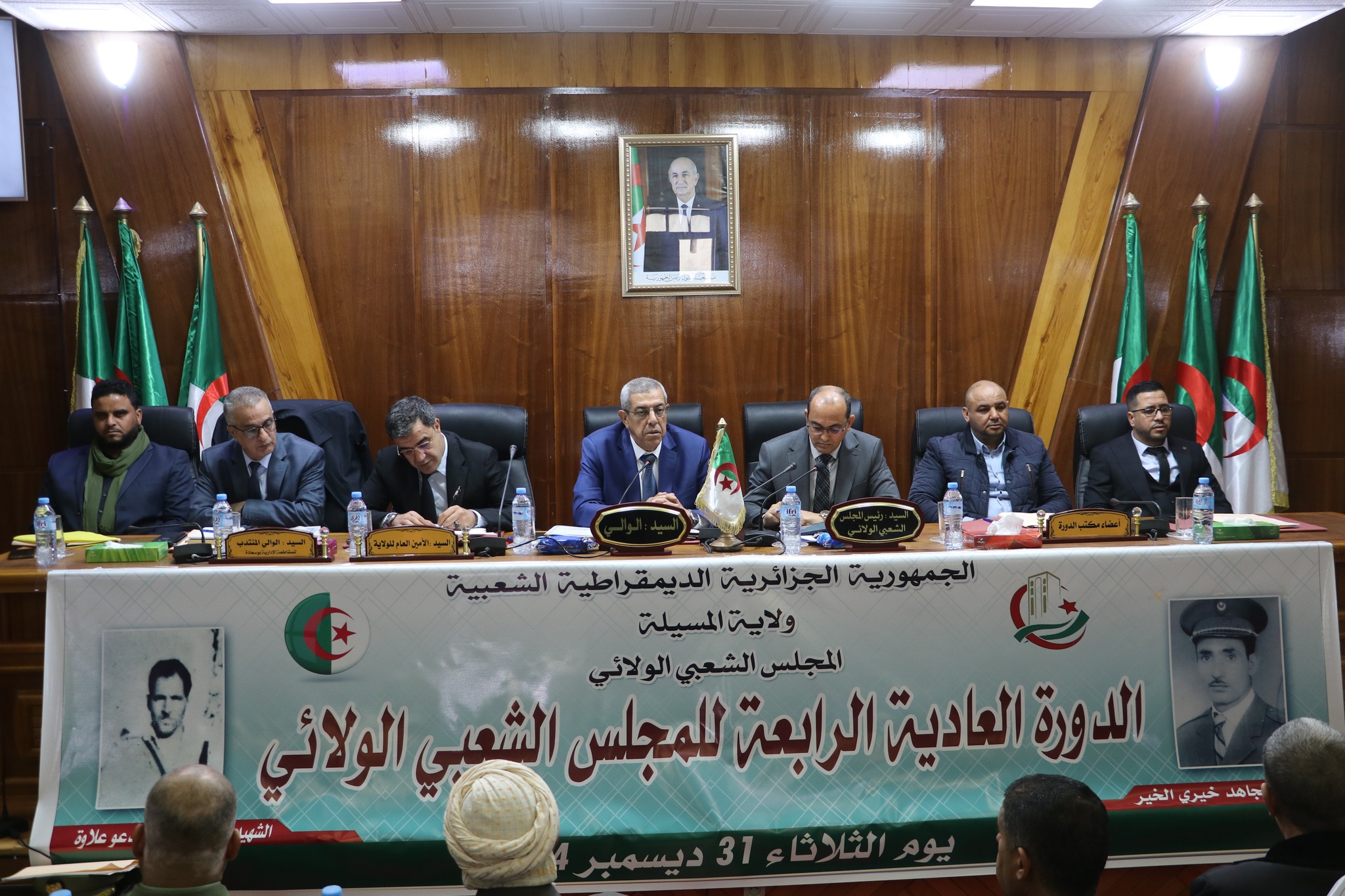 المسيلة/ إنطلاق فعاليات الدورة العادية الرابعة لسنة 2024 للمجلس الشعبي الولائي لولاية المسيلة، اليوم الثلاثاء 31 ديسمبر 2024، برئاسة السيد رضا حمريط رئيس المجلس الشعبي الولائي بحضور السيد نجم الدين طيار والي الولاية، وبحضور كل من السيدات والسادة: الوالي المنتدب لبوسعادة، أعضاء اللجنة الولائية للأمن، أعضاء البرلمان بغرفتيه، أعضاء المجلس الشعبي الولائي، الأمين العام للولاية، المفتش العام للولاية، مندوب وسيط الجمهورية، الأمين الولائي لمنظمة المجاهدين، أعضاء الأسرة الثورية، مدير الإدارة المحلية، مدير التنظيم والشؤون العامة، مدير المواصلات السلكية واللاسلكية الوطنية بالمسيلة، أعضاء المجلس الأعلى للشباب لولاية المسيلة، ممثل المرصد الوطنى للمجتمع المدني، رؤساء الدوائر، مدراء الهيئة التنفيذية للولاية، رؤساء المجالس الشعبية البلدية، ممثلي المجتمع المدني والحركة الجمعوية والأسرة الاعلامية، بعد الاستماع لآيات بينات من الذكر الحكيم والنشيد الوطني، ليتم إلقاء كلمة افتتاحية من طرف السيد رئيس المجلس الشعبي الولائي، رحب من خلالها بالسادة الحضور، ومعلنا عن تسمية الدورة باسم الشهيد فلاك محمد المدعو علاوة والمجاهد الراحل خيري الخير رحمهما الله، واسكنهما فسيح جناته، ليتم تكريم عائلتي المرحومين.