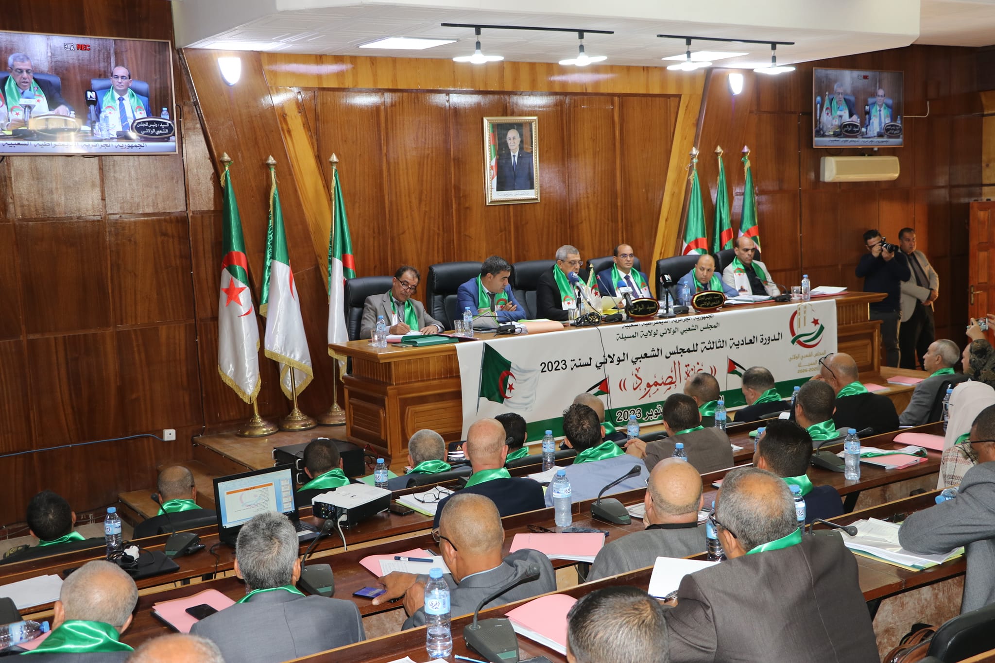 المسيلة/ إنطلاق فعاليات الدورة العادية لسنة 2023 للمجلس الشعبي الولائي لولاية المسيلة التي سميت بإسم غزة الصمود اليوم 26 أكتوبر 2023 برئاسة السيد رضا حمريط رئيس المجلس الشعبي الولائي وبحضور السيد نجم الدين طيار والي الولاية، وبحضور كل من السيدات والسادة: أعضاء اللجنة الولائية للأمن، نواب المجلس الشعبي الوطني، الأمين العام للولاية، المفتش العام للولاية، مندوب وسيط الجمهورية، مدير الادارة المحلية، مدير التقنين والشؤون العامة، مدير جامعة المسيلة، مدير المواصلات السلكية واللاسلكية الوطنية بالمسيلة، أعضاء المجلس الأعلى للشباب لولاية المسيلة، أعضاء المجلس الشعبي الولائي، رؤساء الدوائر، رؤساء المجالس الشعبية البلدية، المدراء التنفيذيين للولاية، عضو المرصد الوطنى للمجتمع المدني، ممثلي المجتمع المدني أعضاء الاسرة الاعلامية.