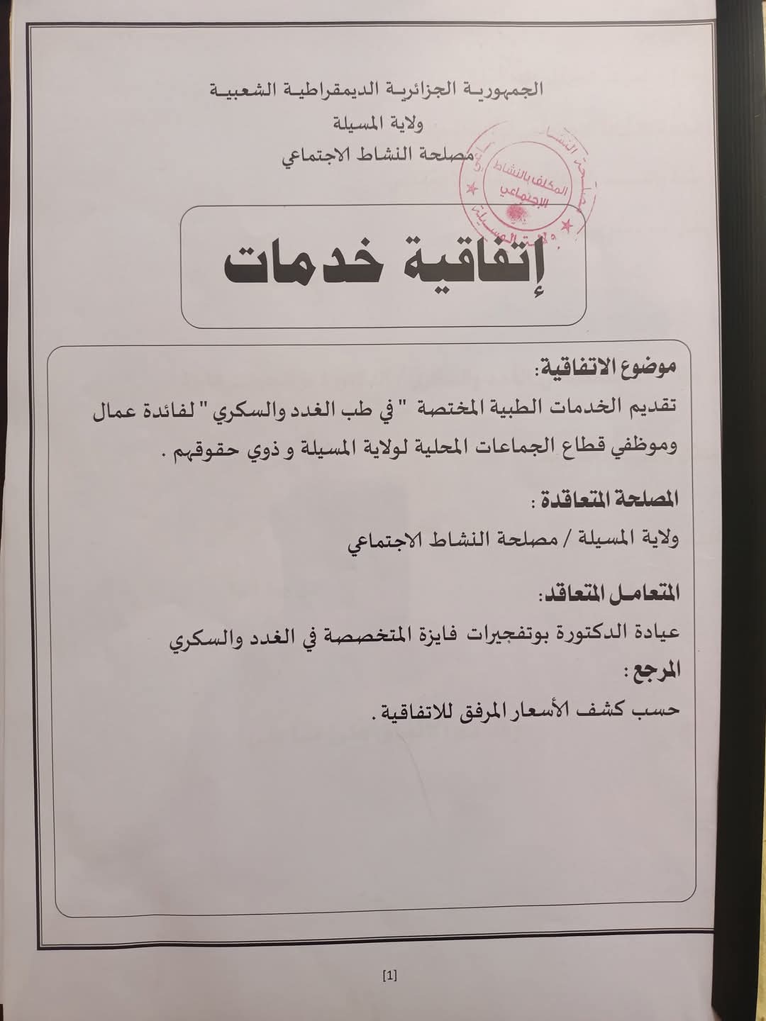 اتفاقية خدمات/ مصلحة النشاط الاجتماعي