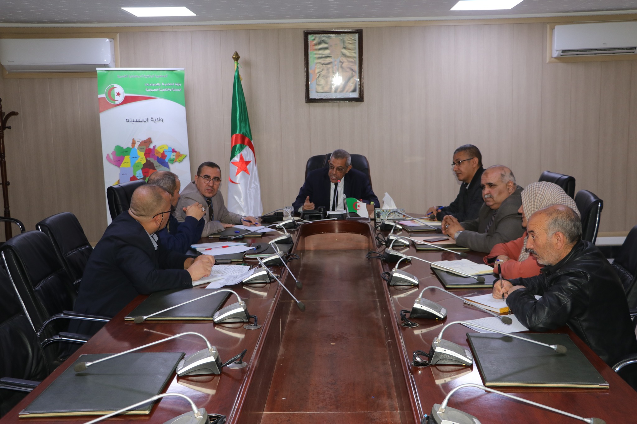 المسيلة/ ترأس اليوم الأحد 30 مارس 2025 السيد نجم الدين طيار والي الولاية إجتماعا تقييميا، بقاعة الاجتماعات أحمد الغازي مقر الولاية، بحضور السادة: رئيس الديوان، مدير الإدارة المحلية، السادة مدراء: الري، الطاقة، التجارة، المصالح الفلاحية، مدير شركة توزيع الكهرباء والغاز، وملحق بالديوان.