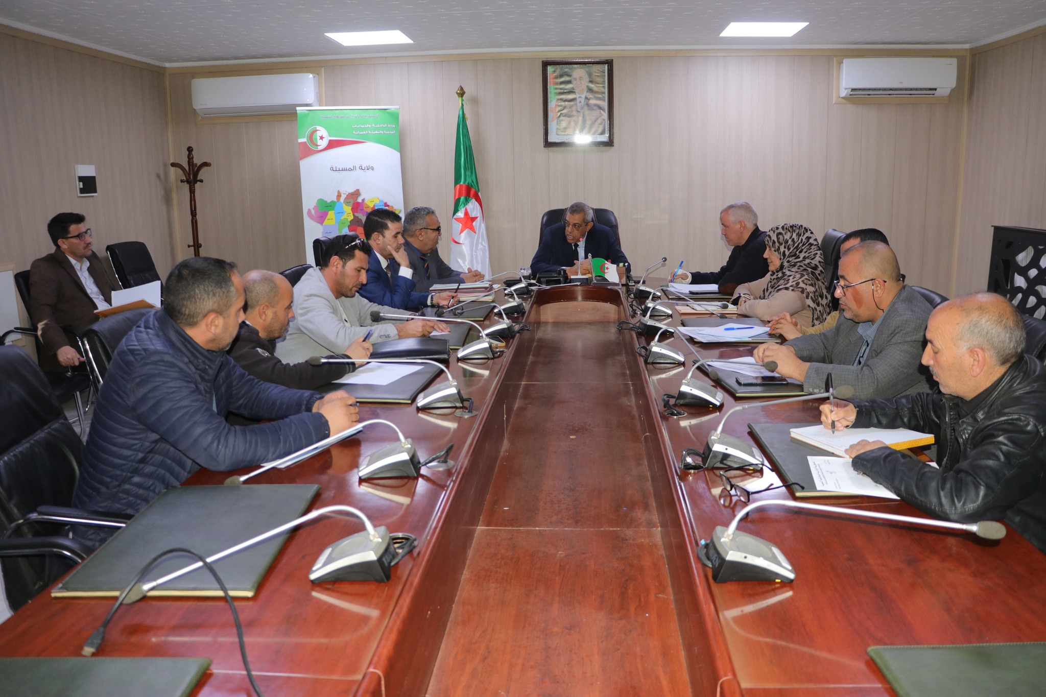 المسيلة/ ترأس اليوم الثلاثاء 18 مارس 2025 السيد نجم الدين طيار والي الولاية إجتماعا تنسيقييا، بقاعة الاجتماعات أحمد الغازي مقر الولاية، بحضور السادة: الأمين العام للولاية، مدير التقنين والشؤون العامة، مدير الري، مدير المصالح الفلاحية بالنيابة، أعضاء الشباك الوحيد على مستوى مديرية الري، مدير شركة توزيع الكهرباء والغاز.