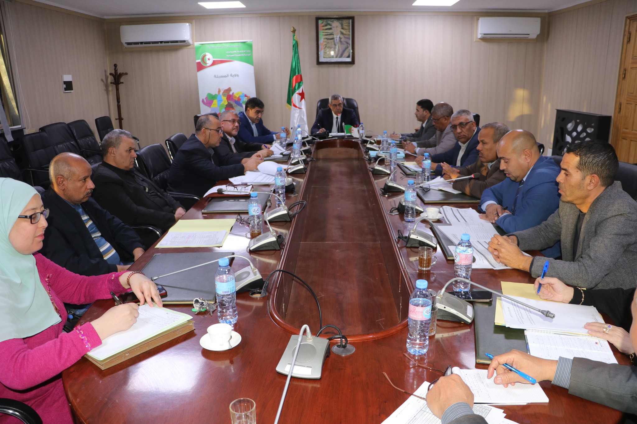 المسيلة/ ترأس اليوم الأحد 01 ديسمبر 2024 السيد نجم الدين طيار والي الولاية، بقاعة الاجتماعات أحمد الغازي مقر الولاية، إجتماعا تنسيقيا بحضور السيد الأمين العام للولاية، السيد مدير التقنين والشؤون العامة، السيدة والسادة مدراء: أملاك الدولة، الصناعة، التعمير والهندسة المعمارية والبناء، الموارد المائية، الطاقة والمناجم، البريد والمواصلات السلكية واللاسلكية، الوكالة الولائية للتسير والتنظيم العقاري، مسح الأراضي والحفظ العقاري، الوكالة الولائية للتنظيم والتسيير العقاري الحضري، شركة توزيع الكهرباء والغاز بالمسيلة، رؤساء المصالح وملحق بالديوان.