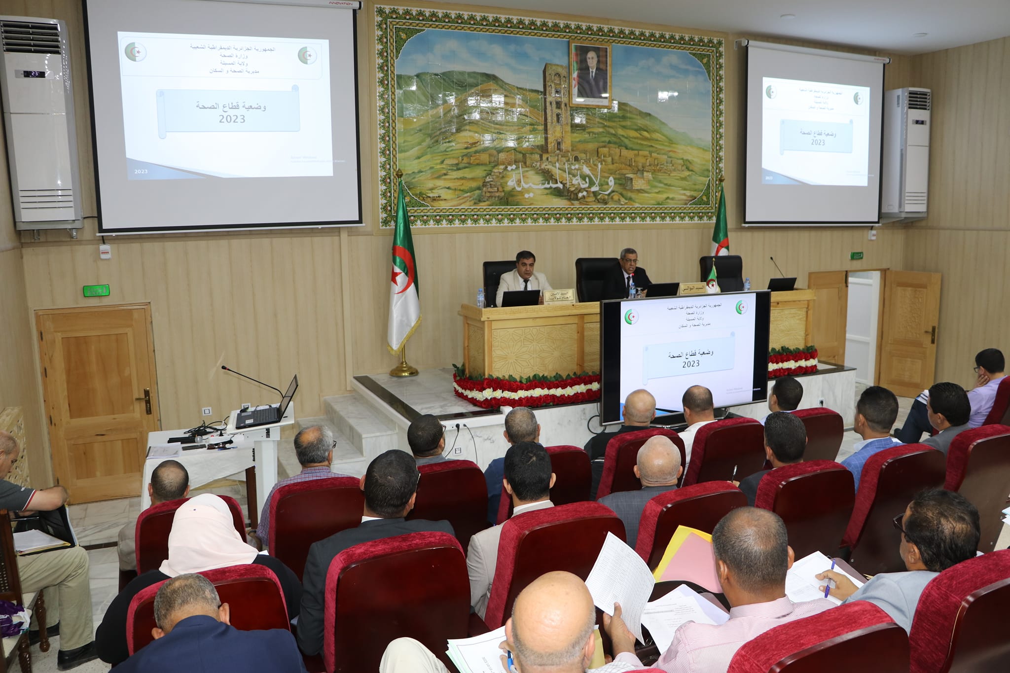 المسيلة/ ترأس مساء اليوم الثلاثاء 10 أكتوبر 2023 السيد نجم الدين طيار والي الولاية، اجتماعا تنسيقيا لمتابعة وتقييم وضعية ملف قطاع الصحة بالولاية، حضر الاجتماع السيد الأمين العام للولاية، السيد مدير الادارة المحلية وكل من السادة: رؤساء الدوائر، مدير البرمجة ومتابعة الميزانية، مدير التجهيزات العمومية، المراقب الميزانياتي للولاية، أمين خزينة الولاية، مدراء المؤسسات العمومية للصحة الجوارية، مدير شركة توزيع الكهرباء والغاز بالمسيلة، رؤساء الأقسام الفرعية للتجهيزات العمومية وملحق بالديوان.